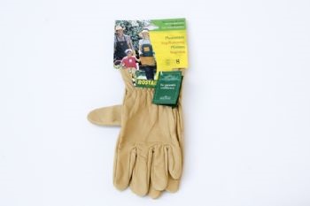 De eerlijke handschoen van leer met kort manchet, maat 9 (heren). De echte tuinhandschoen! Zit perfect en blijft soepel, ook nadat ze nat geworden zijn. Af en toe invetten verlengt de levensduur.