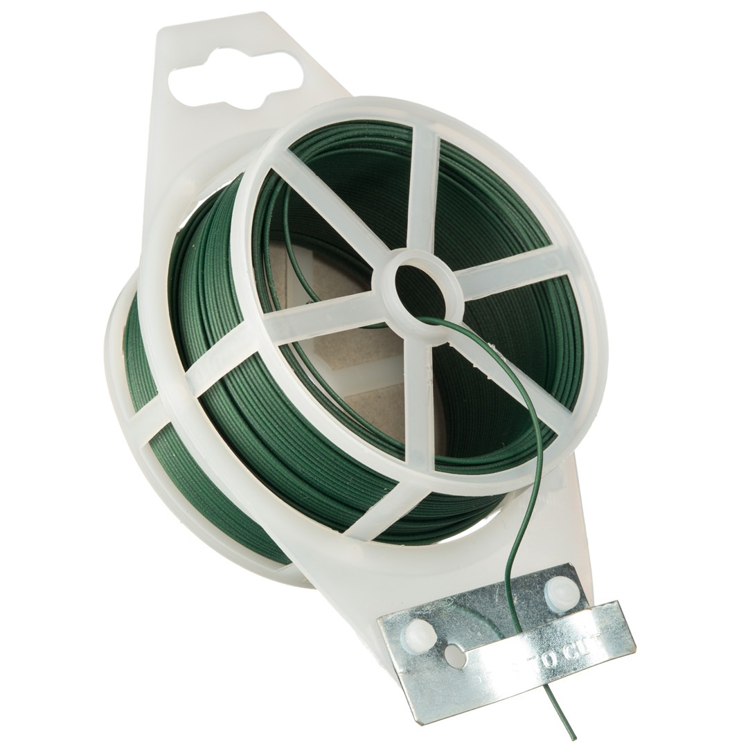 Geplastificeerd bindband van groen PVC met metalen kern van Nature. Het bindband is multifunctioneel, roest niet en valt niet op dankzij de groene kleur.Geplastificeerd metaaldraad 1,22mm x 50m