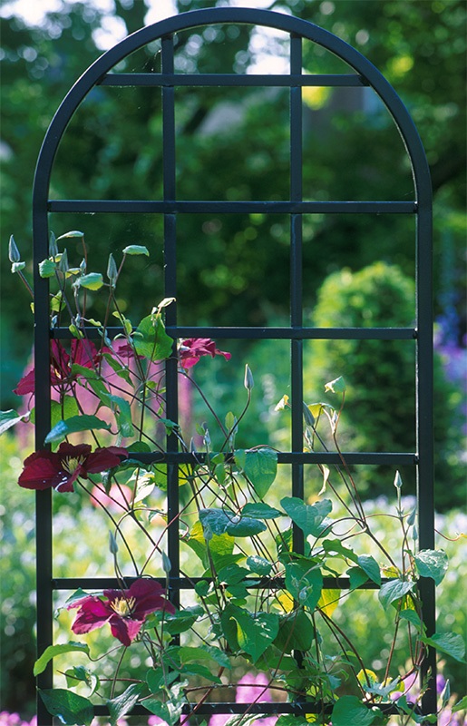 Deze vrijstaande stevige trellis, copie van een model uit de 19e eeuw in een tuin in Burlington, New Jersey, is ideaal voor de ondergrond van uw klimroos, clematis of lathyrus. Omdat deze trellis met (meegeleverde) ankers geleverd wordt kunt u de trellis ook voor een muur zetten waar u liever niet in boort.