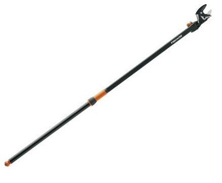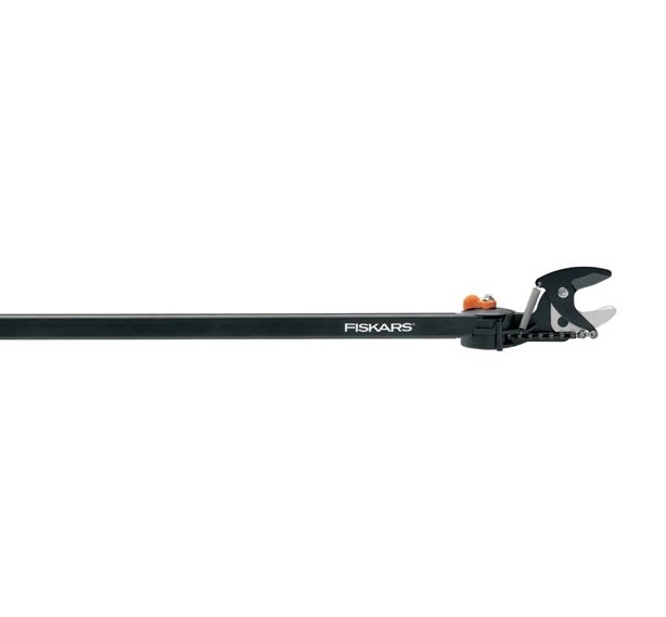 In 1997 zorgde Fiskars voor een revolutie op de markt door de invoering van de ‘snoeigiraffes’- familie. Snoeigiraffes maken het mogelijk om te snoeien op moeilijk bereikbare plaatsen, zoals in boomtoppen of juist dicht bij de grond, en deze plaatsen op een comfortabele manier en zonder ladder te bereiken. Het kettingmechanisme en het rolkoordsysteem zorgen voor een enorme krachtbesparing. De snoeikop kan 230°&730°; worden gedraaid, zodat je in iedere positie comfortabel kunt werken. Het snoeimechanisme aan de achterzijde van de snoeigiraffe maakt snoeien op deze hoogtes mogelijk. De snoeigiraffe ‘premium’ heeft een groot aantal verschillende snoeiposities, met de mogelijkheid de snoeikop tot 230° te draaien en te fixeren. Inclusief de gebruiker is een totale snoeihoogte van ruim 4 meter haalbaar. Messen uit gehard roestvrij staal en voorzien van Teflon coating. Ideaal voor het snoeien op hoogte zonder grote krachtinspanning. Uitgerust met ergonomisch trekstuk met comfortabele Softgrip™ -oppervlak. Combineerbaar met verlengstuk, fruitplukker en adapter boomzaag. Informeer hiernaar via het contactformulier. Lengte: 158 cm Gewicht: 870 gram