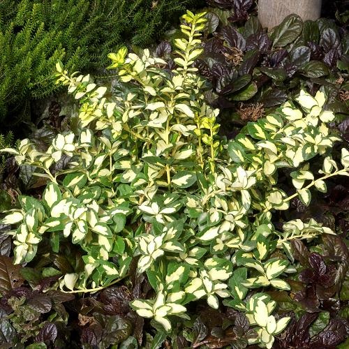 Een winterharde bodembedekker met geel-groen blad. Kan in de zon en halfschaduw worden geplaatst. De plant blijft in de winter groen en draagt geelgroene bloemen. De struik kan het gehele jaar gesnoeid worden, maar heeft in principe weinig snoei nodig. 50 cm is ongeveer de hoogte van deze plant.