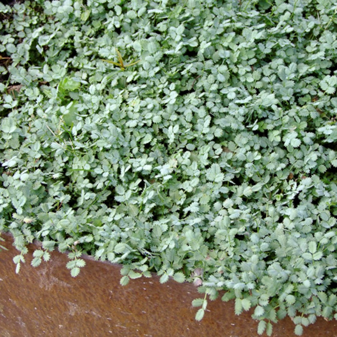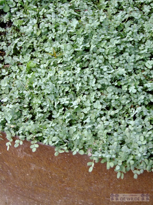 De Acaena buchananii is een bodembedekkende vaste plant met kleine grijsgroene gekartelde blaadjes.