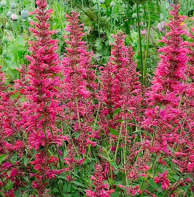 Agastache 'Red Fortune' is een mooie plant met bloeiaren van buisvormige roze/rode bloemen. Het groen blad is aromatisch, getand, lancetvormig, donzig aan de onderkant en geurt naar anijs.