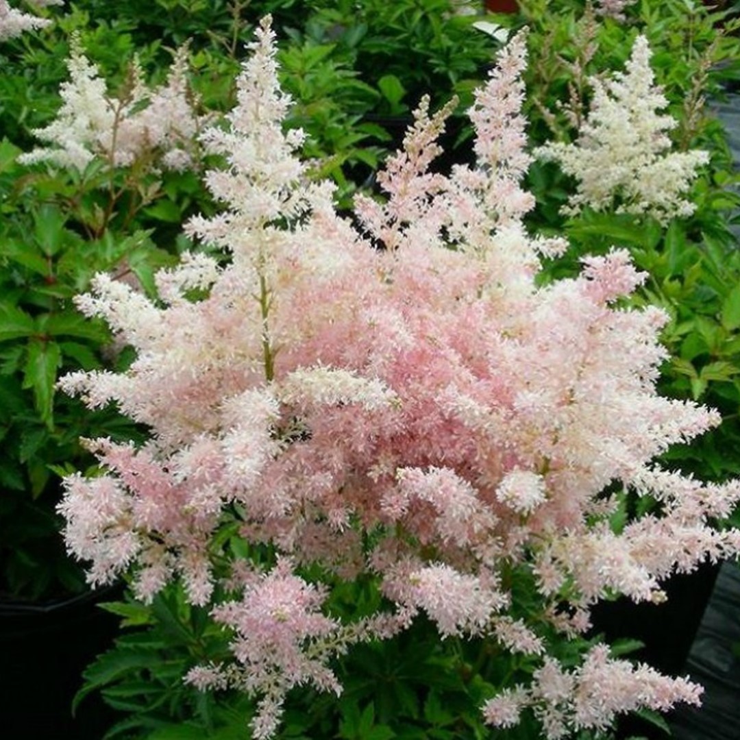 De Astilbe 'Europa' bloeit met lichtroze pluimen in de periode juni-juli. De pluimen bestaan uit honderden hele kleine zalmroze bloemetjes. De hoogte van de Astilbe 'Europa' bedraagt 40 tot 50 cm.