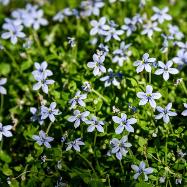 Isotoma fluviatilis is een vaste plant die familie is van de Lobelia. De Blauwe grondkruiper krijgt een lichtblauw bloemetje.