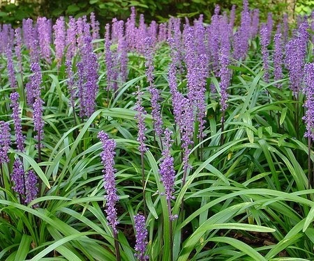 De Liriope muscari Money Maker is een laagblijvende vaste plant die door zijn blad erg lijkt op een siergras. Het leliegras kan tot 50 cm hoog worden en groeit in de breedte met brede, frisgroene tot donkergroene bladeren. Van augustus tot en met oktober bloeit deze vaste plant met prachtige paars/blauwe bloempluimen die boven het bladgroen uitsteken. Na de bloei maken de bloemen plaats voor zwarte bessen. De Liriope muscari Money Maker is winterhard en wintergroen.
