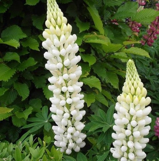 Lupinus 'Noble Maiden' is een meerjarige witbloeiende lupine. De bloei van Lupinus 'Noble Maiden' valt in de periode mei-juli. Lupinus 'Noble Maiden' wordt ongeveer 80-100 cm hoog. Hij is wintergroen en goed geschikt als bodembedekker.