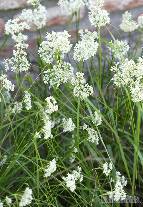 en groenblijvend siergras met in het voorjaar tot begin zomer fraaie witte bloemetjes (mei en juni). Deze siergrassen zijn uitstekend winterhard en bij de juiste aanplanting onderhoudsvriendelijk.