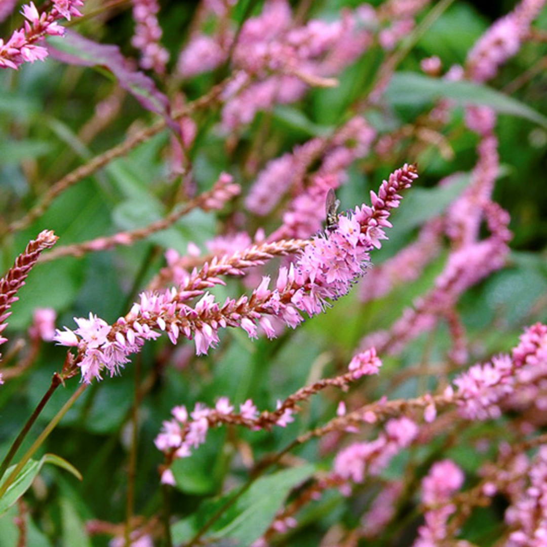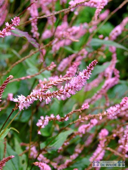 Persicaria ampl. Pink Elephant heeft zijn naam te danken aan de bloemen die het geeft.