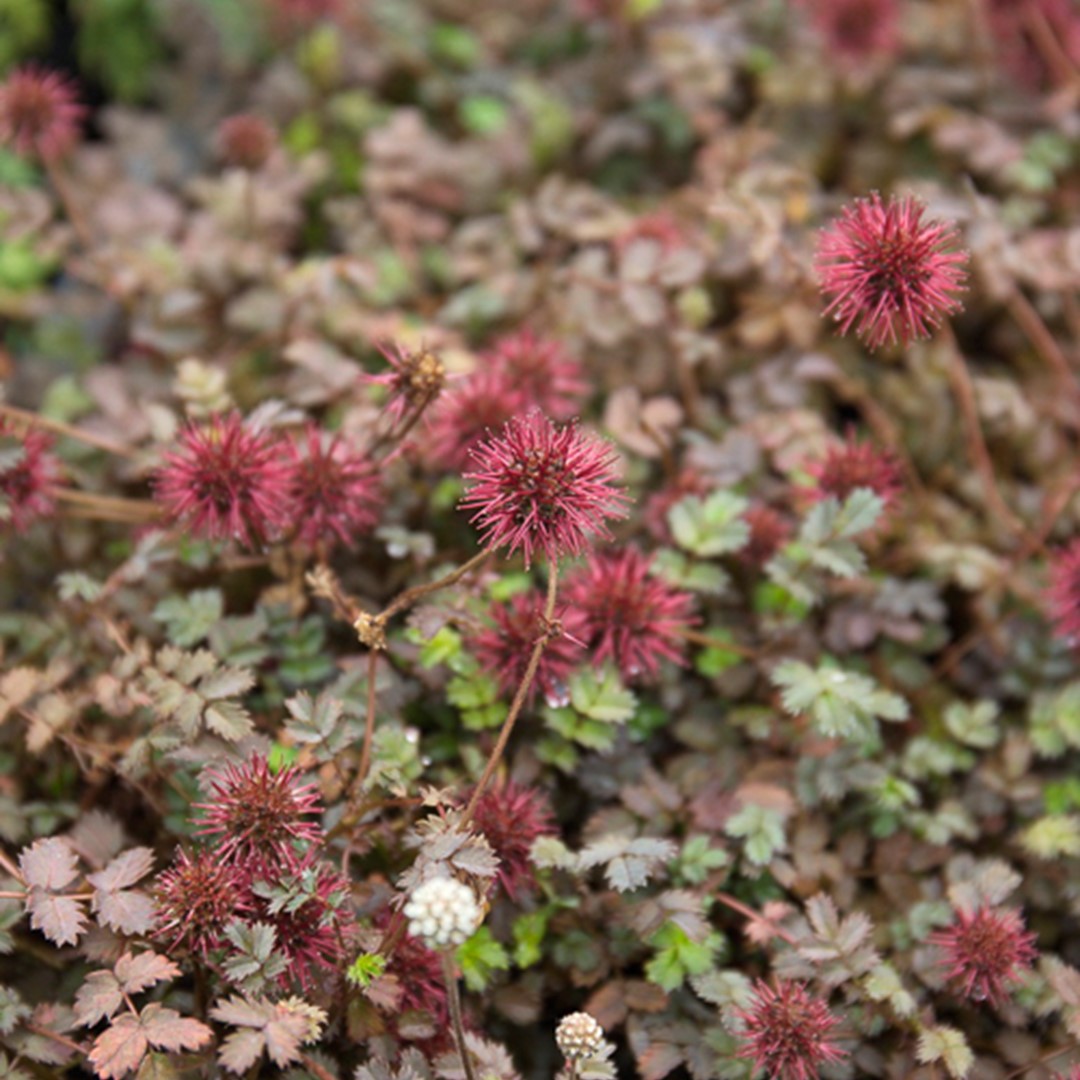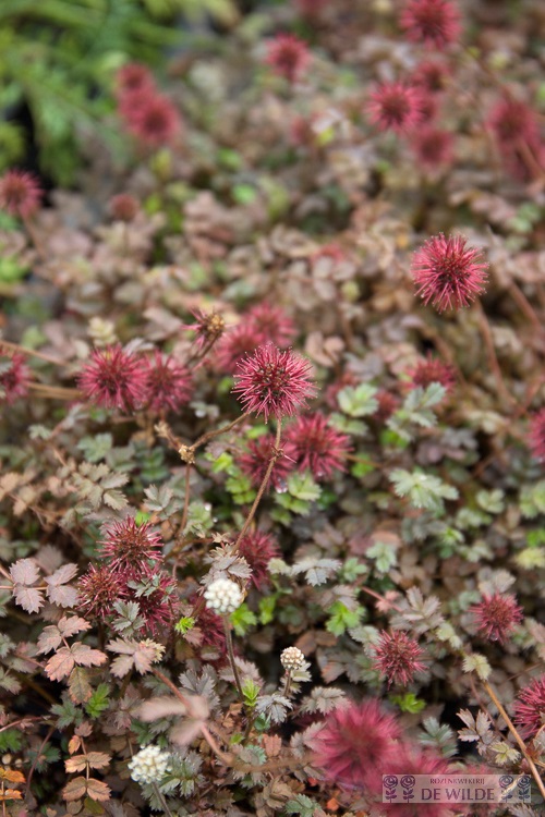 De acaena microphylla 'Kupferteppich' behoort tot de rozenfamilie. De bloemkleur van de Acaena microphylla 'Kupferteppich' is wit en de bloeitijd is vanaf ca. juni tot en met augustus. De bladeren van het stekelnootje zijn grijsgroen tot bronsgroen en klein en ongeveer 10 cm hoog. De totale hoogte van deze vaste plant is 15 cm.