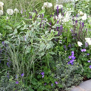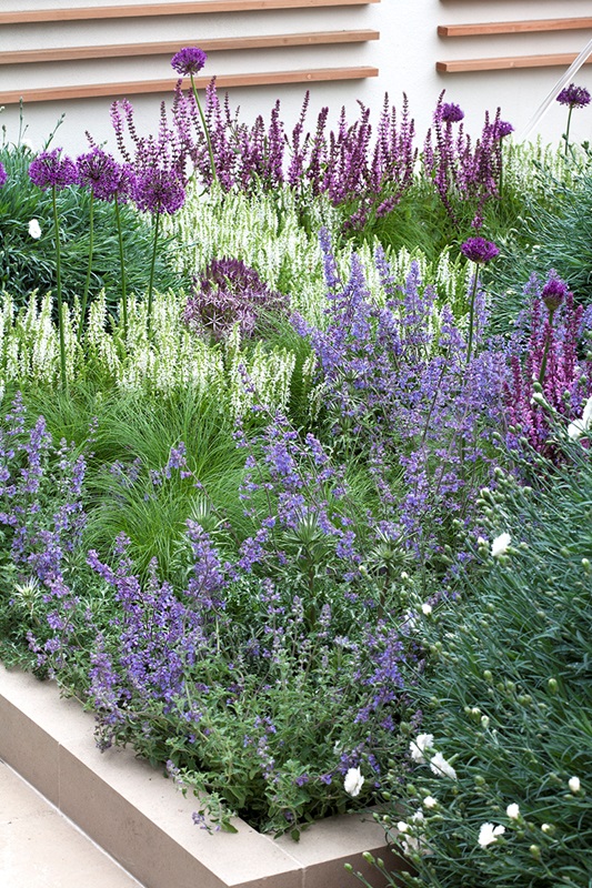 Zomerborder in paars, violet en wit Met dit borderpakket maakt u zelf een rijk bloeiende zomerborder in paars,violet en wit. Het kattenkruid (Nepeta) is de blikvanger in deze mooie combinatie. De vaste planten bloeien van eind mei tot ver in de zomer. De beplanting is van alle kanten mooi, er is niet van laag naar hoog gewerkt. De vaste planten komen elk jaar weer terug. Plant in het najaar nog de bollen van de sierui Allium aflatunense ‘Purple Sensation’ voor extra kleur in mei. U kunt ook in het najaar witte tulpen tussen de vaste planten zetten. De beplanting is geschikt voor een plekje in de volle zon of halfschaduw. De geleverde planten zijn geschikt voor een border van ca. 100 x 150 cm. Voor een grotere border kunt u steeds de planten herhalen.