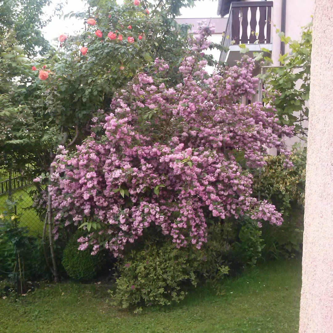 Deutzia hybrida 'Strawberry Fields' is een struik met een bossige, compacte groeiwijze met donkergroene bladeren waarvan de onderkant lichtgroen is. Bloeit rijkelijk met pluimvormige, donkere frambozenroze bloemen omgeven door een witte rand en met een wit hart. Later verbleken de bloemen tot bijna wit. Hij wordt ongeveer 120-150 cm hoog.