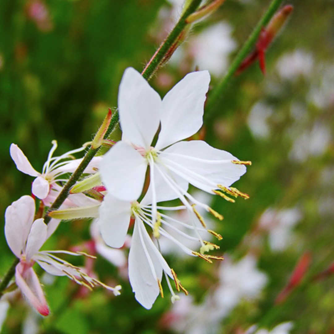 Gaura lindheimeri Whirling Butterfly is een sierlijke vaste plant die zijn naam heeft te danken aan de vorm van de bloemen.