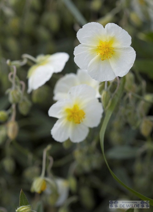 Helianthemum The Bride is een rijkbloeiende bodembedekker.