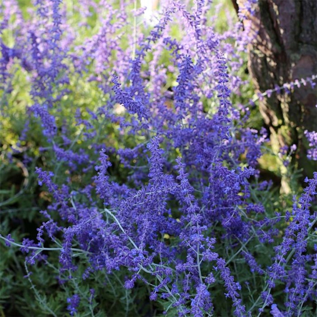 Plant met lange lavendelblauwe aren en grijs blad dat het vooral goed doet op zeer droge kalkrijke zandgrond.
