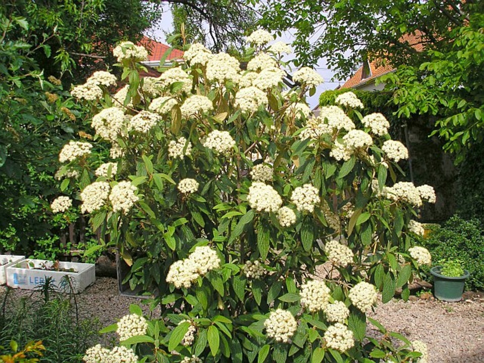 Viburnum rhytidophyllum is een bladhoudende heester maar wordt soms ook gekweekt als kleine boom. De wintergroene sneeuwbal bereikt een hoogte van 3-4 meter. Viburnum rhytidophyllum bloeit in de periode mei-juni. Na de bloei verschijnen de decoratieve helderrode vruchten die naar zwart verkleuren.
