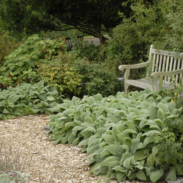 De Stachys byzantina ‘Helene von Stein’ onderscheidt zich door zijn grotere bladeren in vergelijking met de soort. Deze plant is groenblijvend en biedt het hele jaar door een weelderige uitstraling.