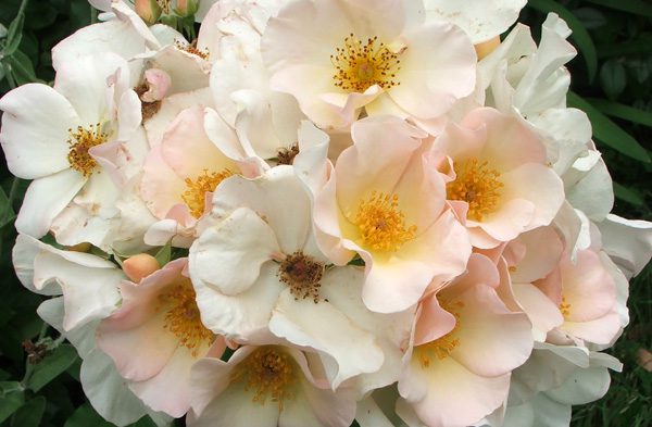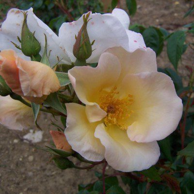 Met haar roomwitte bloemen voegt de Sally Holmes een verfijnde charme toe aan uw buitenruimte. De bloemen staan soms dicht op elkaar, wat zorgt voor een volle, weelderige uitstraling.