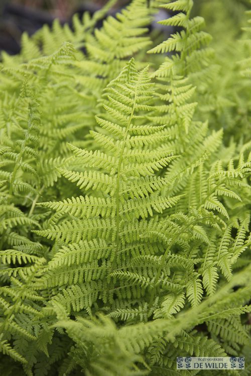 Ontdek de Athyrium filixfemina Wijfjesvaren, een sterke varen met prachtige, fijn geveerde heldergroene bladeren die in de herfst een mooie gele kleur aannemen. Ideaal voor halfschaduwplekken, maar gedijt ook in de zon als de bodem vochtig genoeg is.