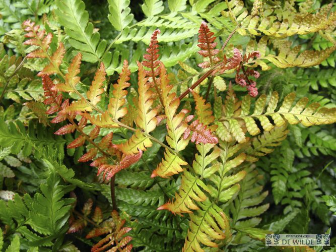 De Dryopteris erythrosora, bekend als de rode sluiervaren, is een wintergroene varen die een hoogte van 40-50 cm bereikt. Deze varen betovert met zijn prachtig variërende bladkleuren van groen tot bruinachtig en gedijt het beste op een schaduwrijke plek met een humusrijke bodem.