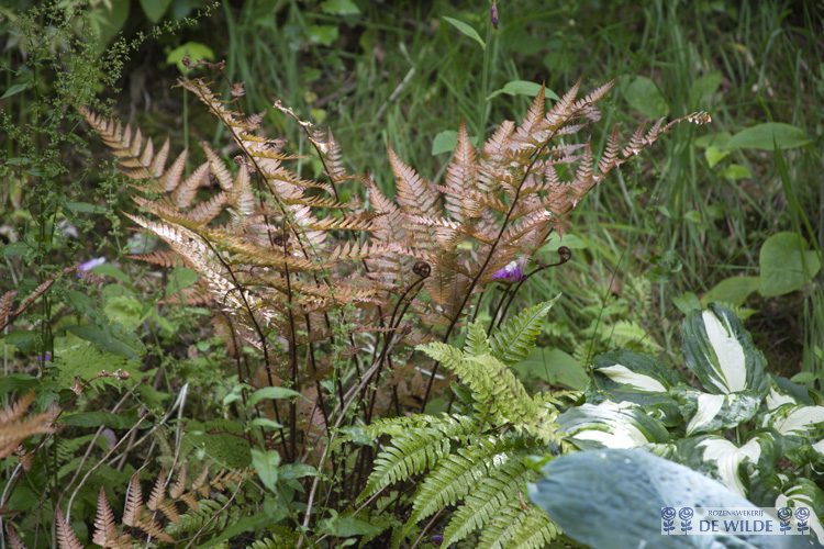 De Dryopteris erythrosora is een varen die niet alleen wintergroen is, maar ook een hoogte van 40-50 cm bereikt. Zijn bladeren variëren prachtig van groen tot een warm bruinachtig tint. Hij geeft de voorkeur aan een schaduwrijke standplaats en een bodem rijk aan humus, waardoor hij een ideale keuze is voor schaduwrijke tuinhoeken.