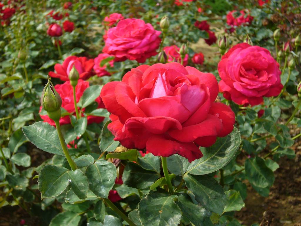 De R Dame de Coeur stamroos is een prachtige verschijning met grote, donkerrode bloemen en weelderig donkergroen blad. Deze sterk groeiende plant is een lust voor het oog en een ware aanwinst voor elke tuin.