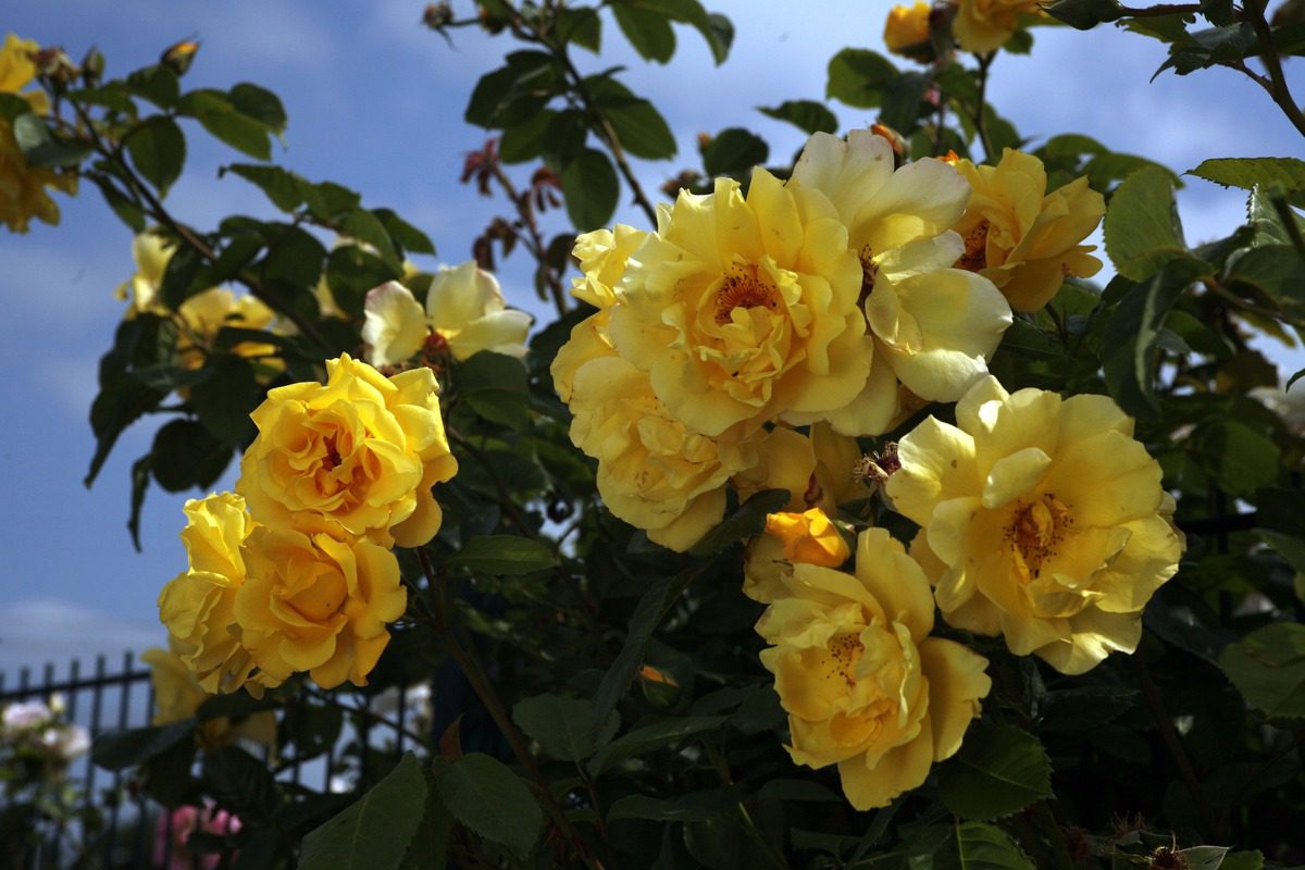 De R Golden Gate is een rijkbloeiende klimroos met goudgele bloemen die bij het verbloeien lichtgeel worden. De halfgevulde bloemen tonen hun meeldraden op een subtiele manier.