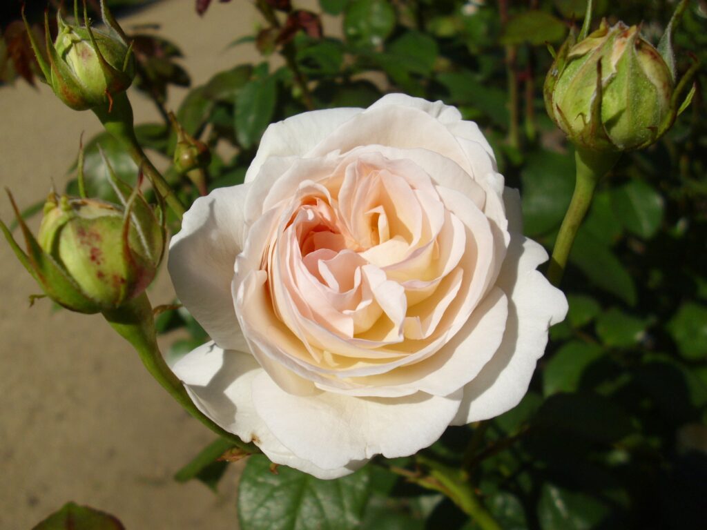 De R Lions Rose Stamroos is een betoverende verschijning met crèmewitte bloemen die later abrikoos- en rozenuances krijgen. Deze trosroos bloeit lang en verspreidt een heerlijke geur. Dankzij de sterke ziekteresistentie geniet je onbezorgd van een weelderige bloei.