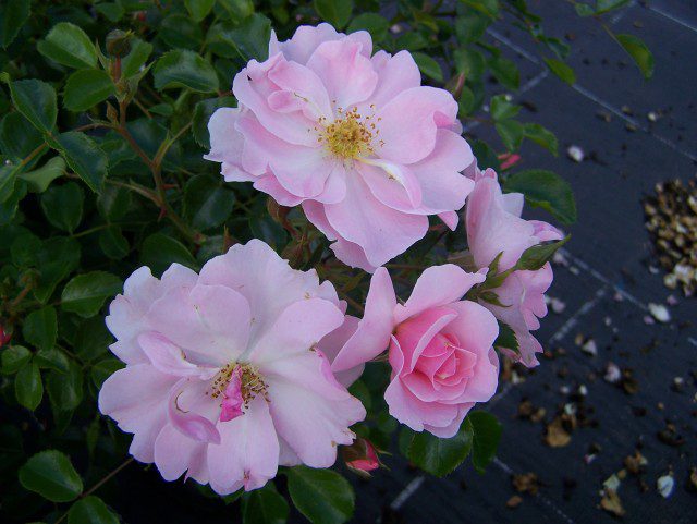 Geniet van de zachte geur en de continue bloei van deze roos. De bloemen zijn halfgevuld en stralen in een zachtroze tint, perfect voor het creëren van een serene en uitnodigende sfeer.