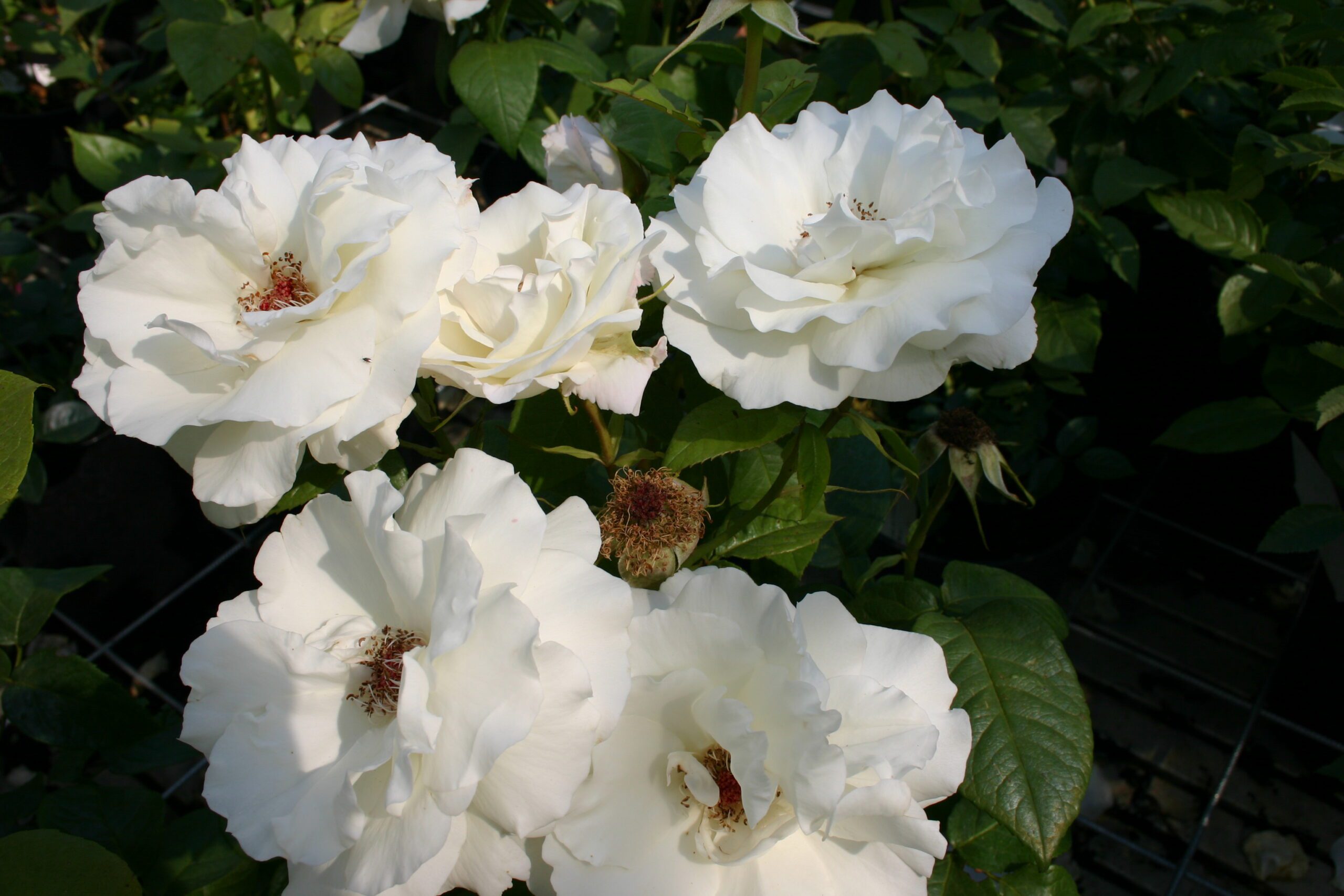 De R Thornhem is een unieke roos die opvalt door haar grote, witte bloemen met opvallende donkerrode meeldraden. Deze combinatie zorgt voor een indrukwekkend contrast dat elke tuin direct opfleurt. De stevige stelen geven de struik een statige uitstraling, ideaal voor een prominente plek in je tuin.