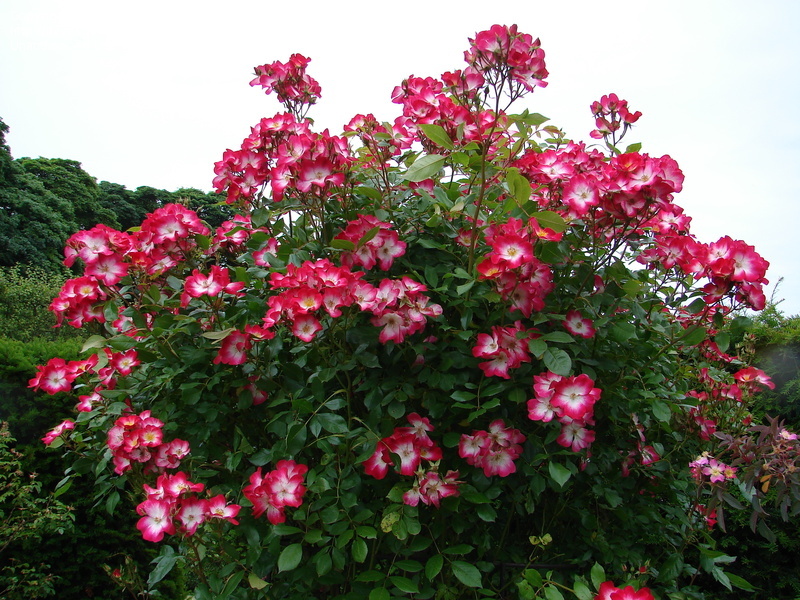 De Rosa Bukavu is een lust voor het oog met haar volle trossen bloemen in een adembenemende kleurencombinatie van wit, donkerroze en karmijnrood, met een opvallend wit centrum. Deze roos is een echte blikvanger!