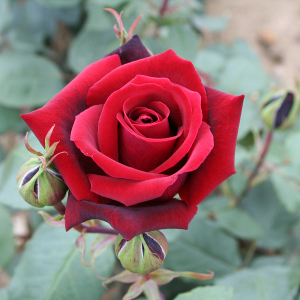De Rosa Deep Secret is een grootbloemige roos die uitblinkt in schoonheid en geur. Haar bloemen zijn groot en hebben een rijke, diep karmozijnrode kleur die elke tuin tot leven brengt. De struik heeft een opgaande groeiwijze en is bedekt met donkergroen, glanzend blad dat een prachtig contrast vormt met de bloemen.