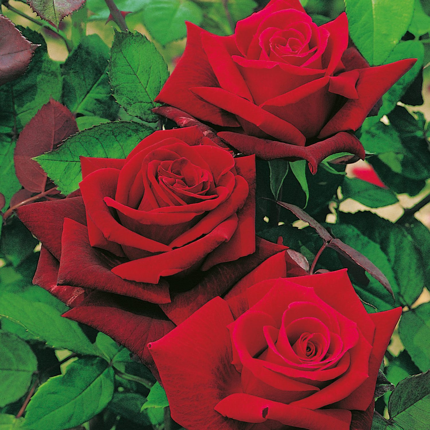 Ervaar de betoverende schoonheid van de Rosa Deep Secret. Deze grootbloemige roos bloeit rijkelijk met diep karmozijnrode bloemen en verspreidt een sterke geur. Ideaal voor elk rozenperk met zijn opgaande groei en glanzend donkergroen blad.