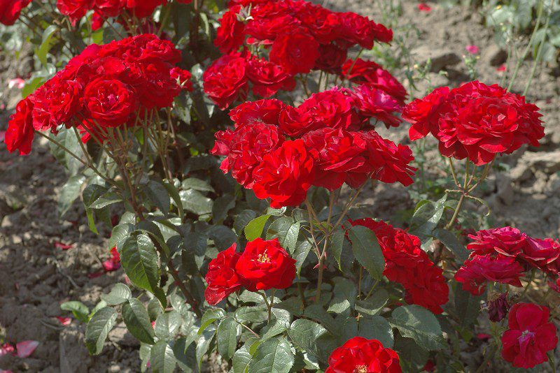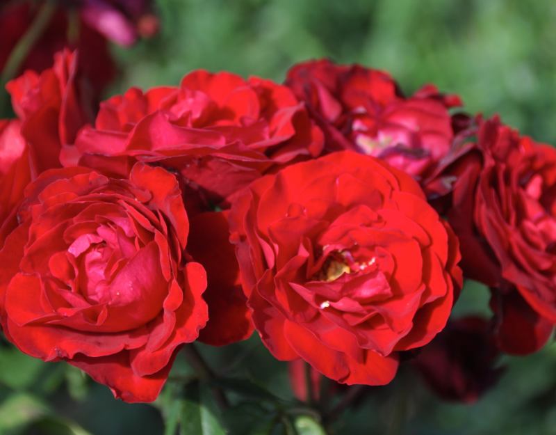 Ontdek de betovering van de Rosa Pussta met haar diep donkerrode, fluweelachtige bloemen die nooit van kleur veranderen. Deze sterke ADR-roos, met haar bossige groeiwijze, gedijt uitstekend in elke tuin. Plant drie rozen per vierkante meter voor een weelderige aanblik.