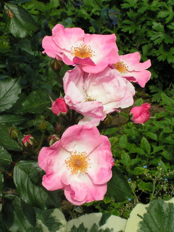 De Rosa Rosy Cushion staat bekend om zijn bijna enkele, helderroze bloemen. Deze bloemen contrasteren prachtig met het dichte en bossige gebladerte, wat zorgt voor een indrukwekkend schouwspel in je tuin.